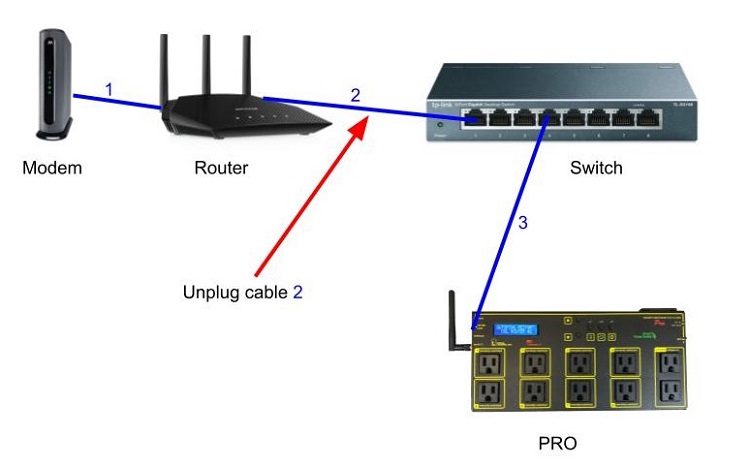 Since simply unpluging the cable from the power controller won't produce the expected results, either unplug the internet cable to the router or test as described in the picture below.